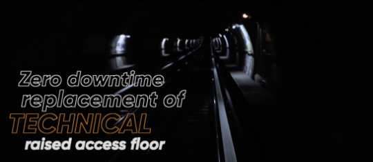 Final result : new access raised floor with inserted rails for rolling out the transformers for maintenance.